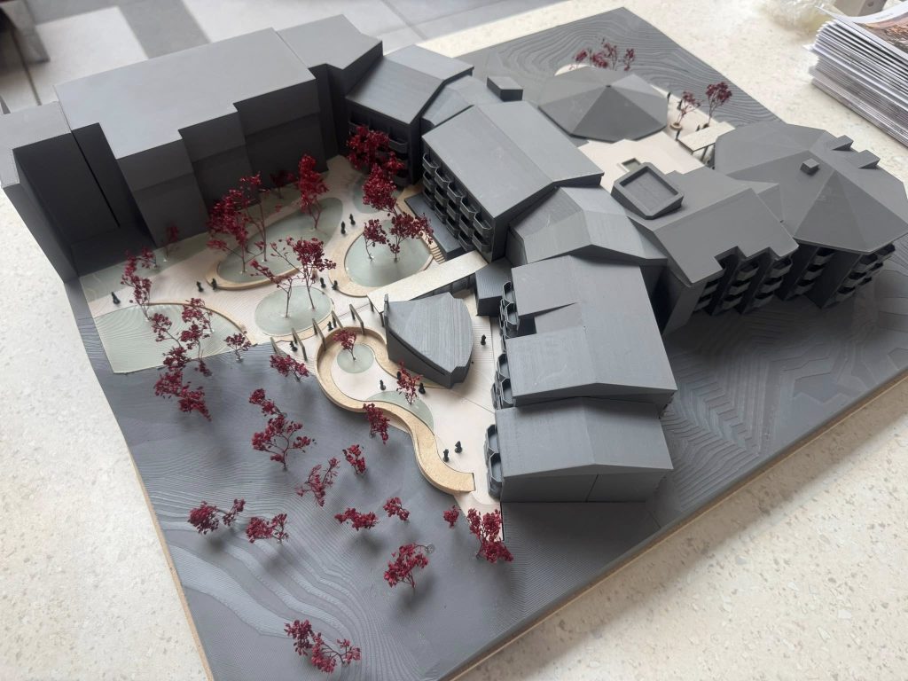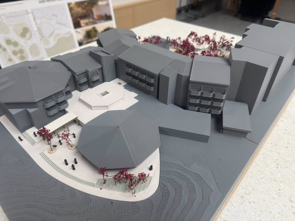 Krasna zasnova, javna razgrnitev treh plakatov in čudovita maketa so nam pričarali povsem nov pogled na naše okolje – od dvorišča za osebe z demenco, južnega vrta, do preureditve recepcije in avle ter razširitve zunanje terase bifeja.